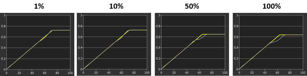 EOTF Tracking Comparison – maximum 100 brightness setting
