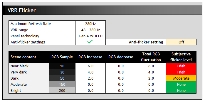 There was however an unusually high input lag for fixed 60Hz input signals for some reason, something which we expect could be improved easily enough in a future firmware update. The 60Hz figure is only applicable for fixed 60Hz input sources keep in mind, it’s the lower 280Hz number that applies in VRR situations, even when your frame rate drops. That may or may not matter to you, depending on what devices you plan to connect.