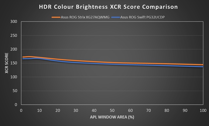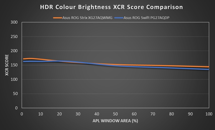 - A scale and score based on perceived ‘brightness’ of the display instead of a raw ‘luminance’ measurement. This uses the XCR model developed by Samsung Display and accounts for both the luminance of the colours but also the colourfulness which is impacted by the colour gamut. XCR and its importance is explained in a lot more detail in our article.